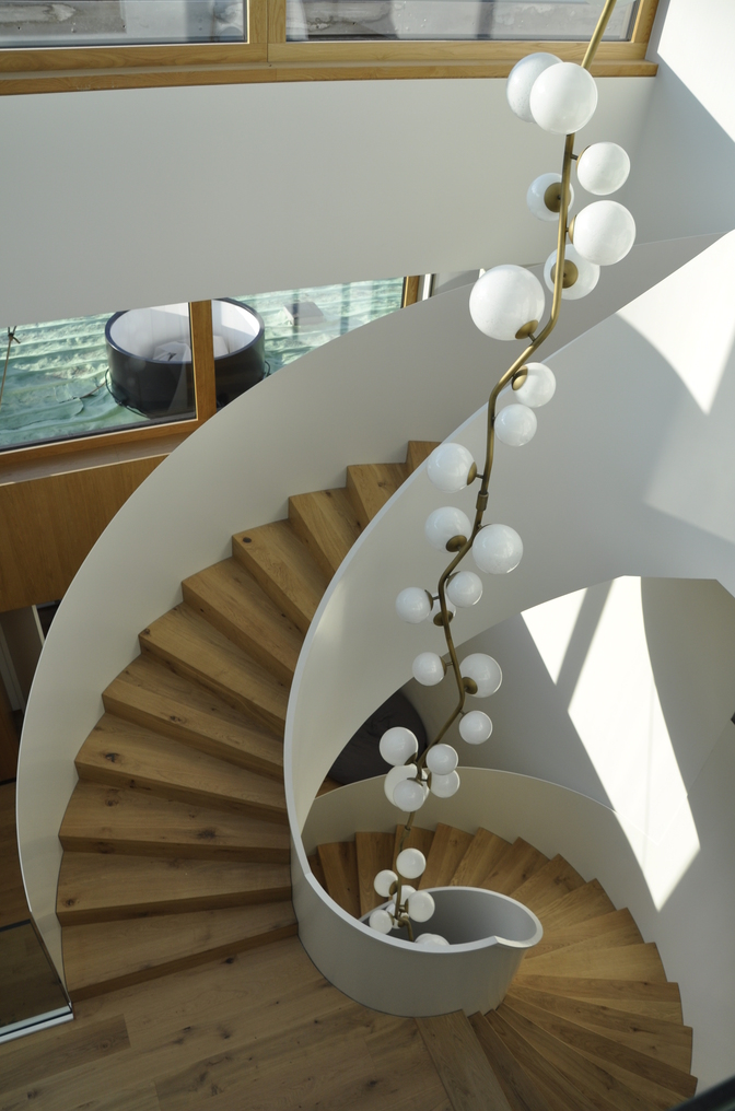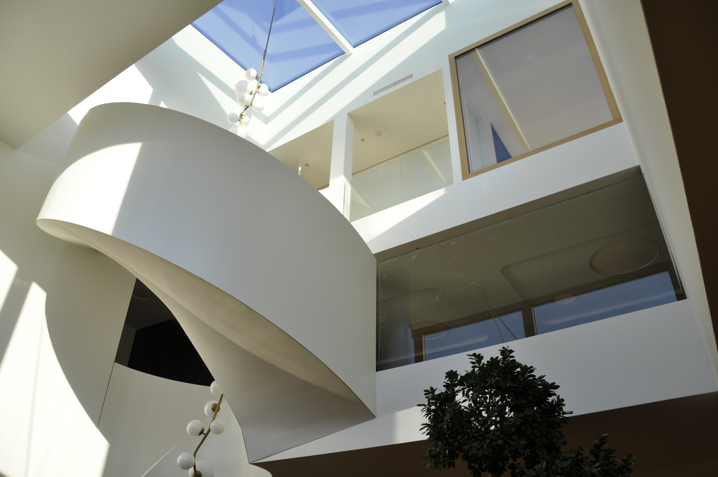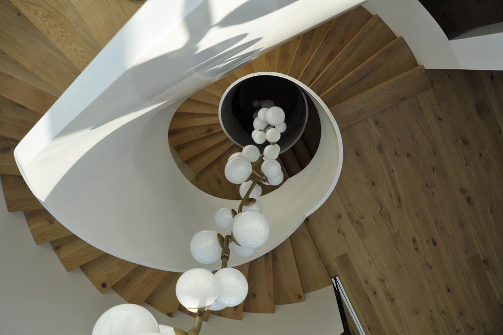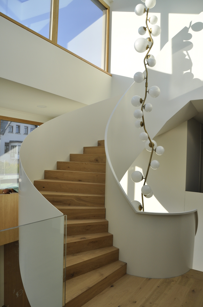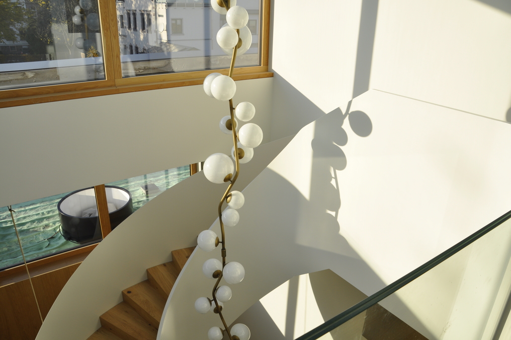 Mehr Design geht nicht – das Blechgeländer für die Betontreppe mit dem beleuchtetem Handlauf in einem Einfamilienhaus schafft maximale Extravaganz; die massive Treppenstruktur verbindet sich perfekt mit den in Kontrast stehenden Ganzglasgeländern, die die entsprechende Leichtigkeit schaffen – für eine solide, filigrane und zeitglose Wohnatmosphäre.