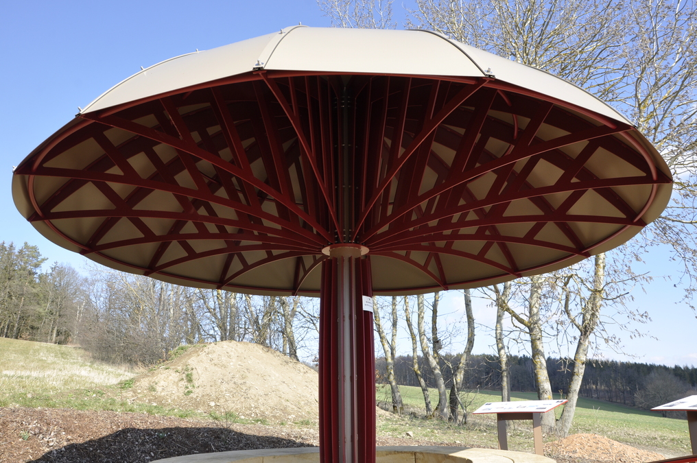 Wetterschutz und die Möglichkeit für eine Rast bietet der Wetterpilz am Chemnitzer Höhenweg, Schautafeln informieren über die Sicht auf markante Punkte in der Umgebung, weitere 4 Wetterpilze im Umkreis laden zum Verweilen ein (siehe Wanderkarte 2023 und Wanderkarte 2024).